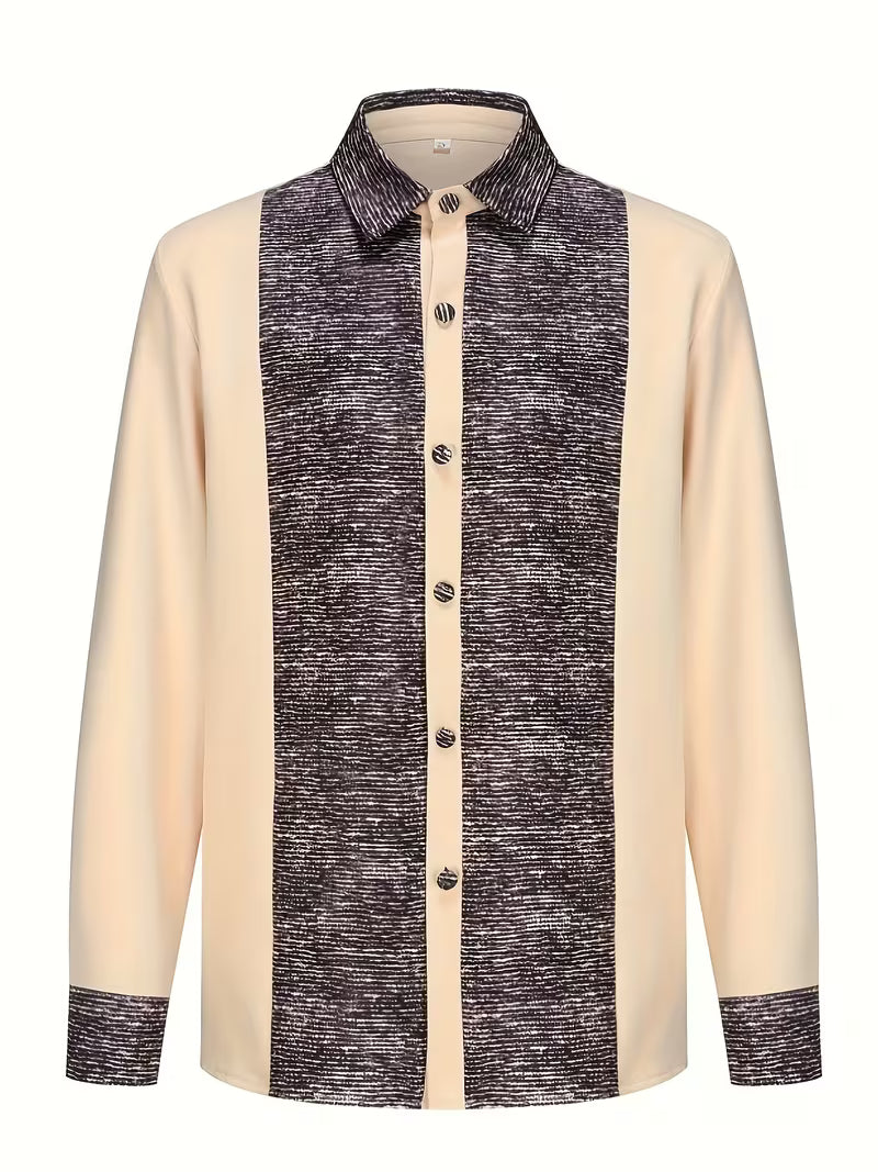 Cream And Charcoal Texture Panel Men's Traditional Two-Piece Set