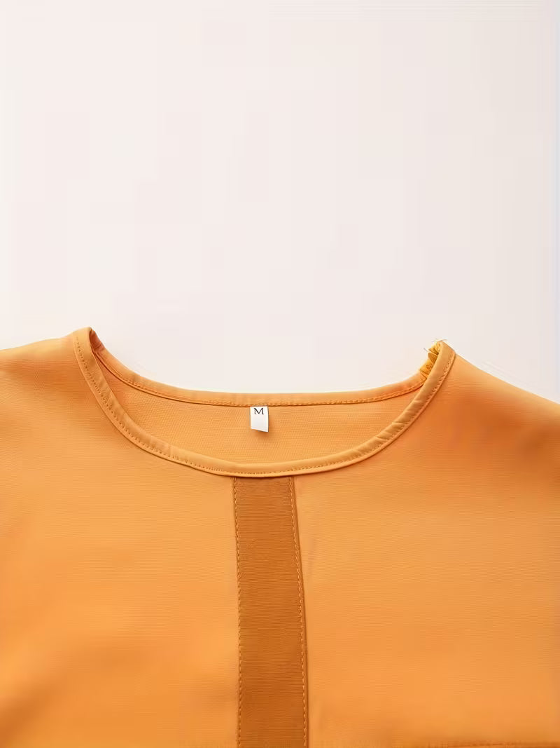 Design: Solid mustard base with tan contrast panel & pocket details