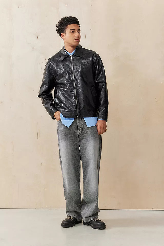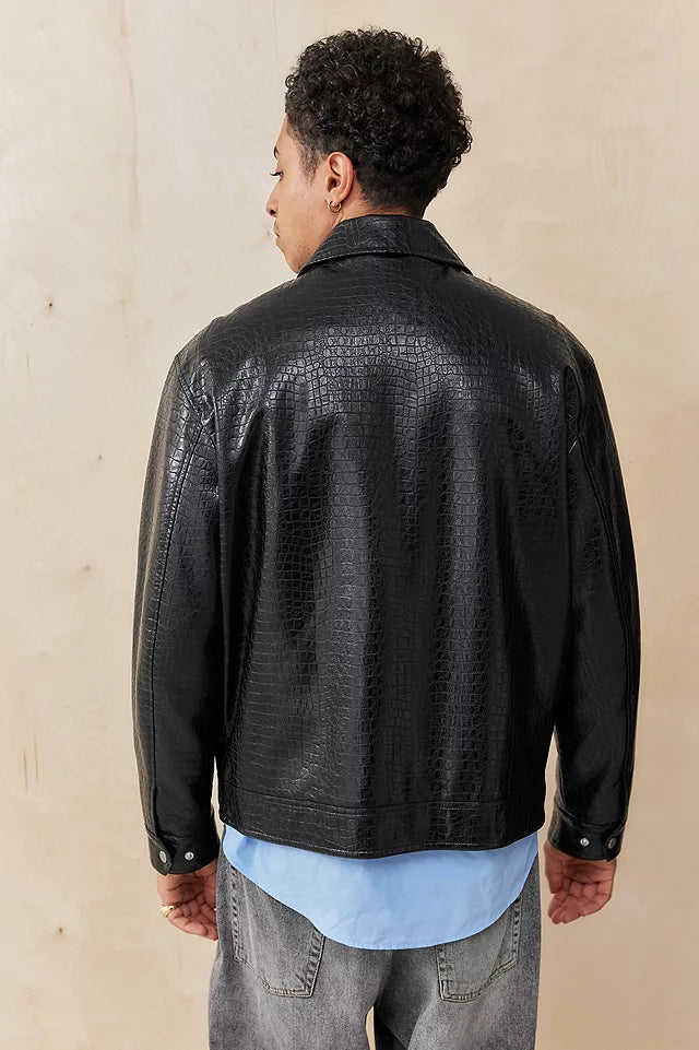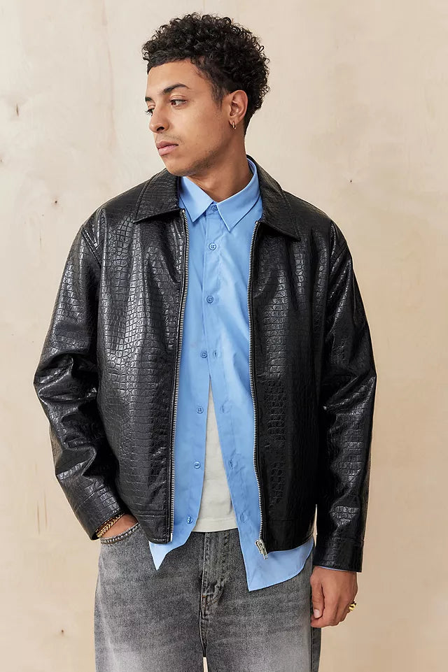 Textured Leather Zip Jacket