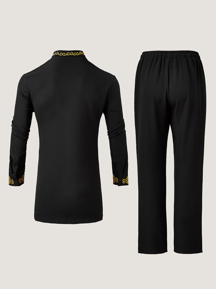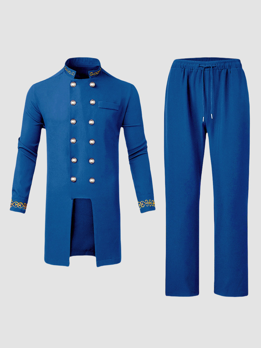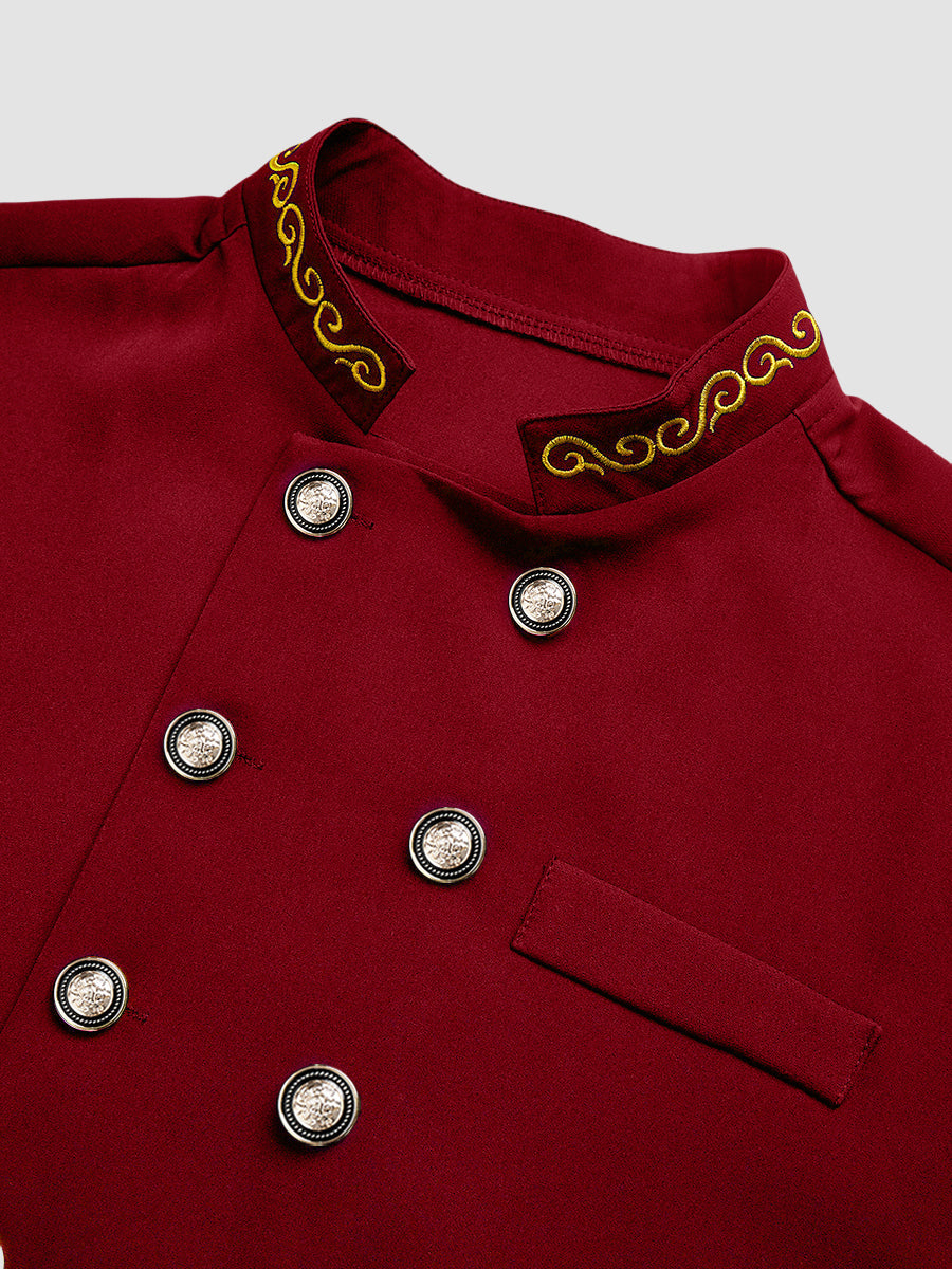 DESCIPTION: Get ready to make a bold fashion statement with our Double-breasted Embroidered Dashiki Suit! This eye-catching suit features intricate embroidery and a unique double-breasted design. Stand out from the crowd and show off your playful style with this one-of-a-kind suit.