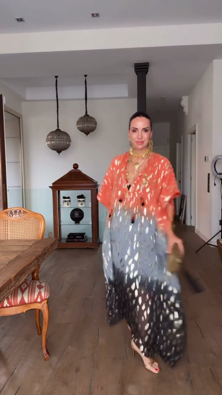 Elevate your resort and bohemian - chic wardrobe with this Gradient Print Kaftan Maxi Dress. The flowing silhouette, ombre pattern, and metallic accents create a stylish, relaxed look. Perfect for beach vacations, poolside lounging, or boho gatherings. Pair with statement jewelry and strappy sandals to complete the effortlessly glamorous ensemble.