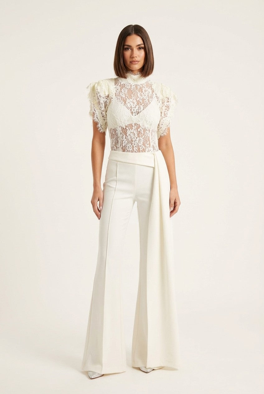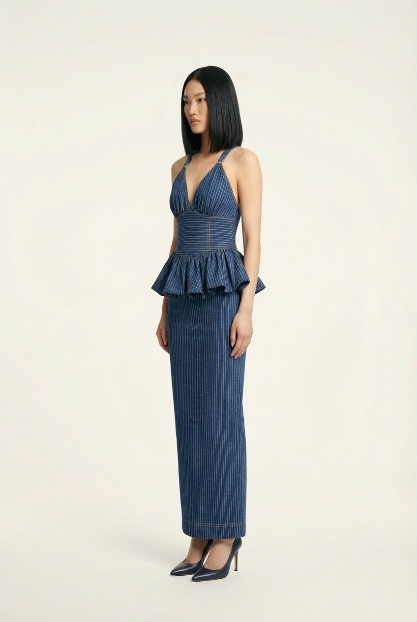 Meet our Mini Dress, a true embodiment of elegance. This exquisite dress is meticulously crafted from pleated sheer woven fabric, offering a unique and textured look. Adorning the neck, a pearl chain creates the illusion of a delicate necklace, while it gracefully cascades down the center of the back. Additionally, there's an extra detachable pearl chain that elegantly spans across the back for added versatility. Garment is double lined.