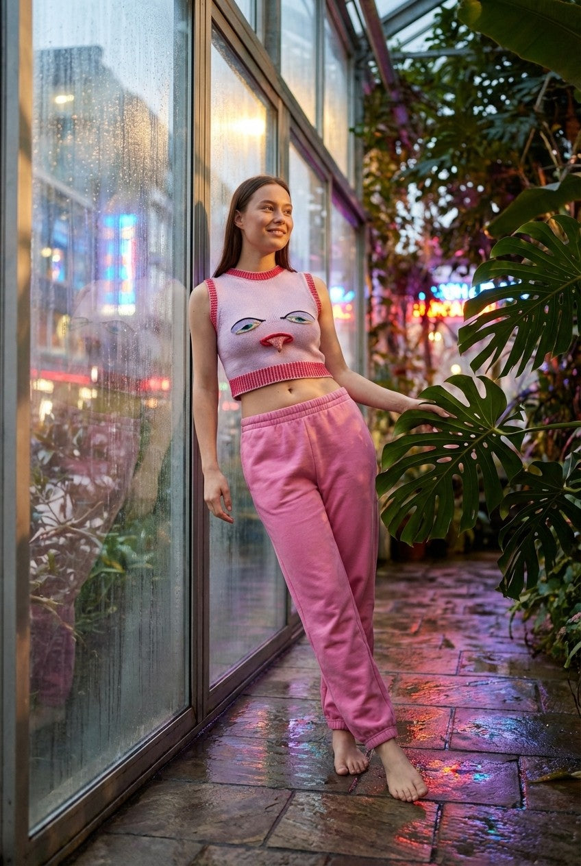 Style It With: Pair with high-waisted pink joggers for a coordinated lounge look or denim shorts for a quirky summer outfit.